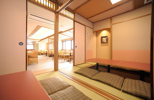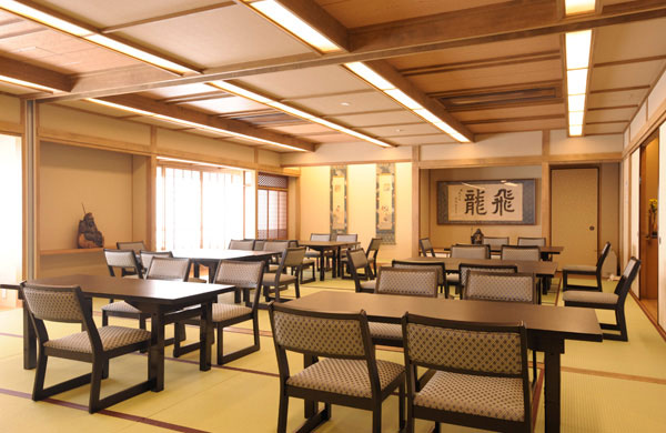 明るい大広間、畳敷きですが和室用テーブルと椅子をご用意いたしております。48名様のお席まで対応でき、間仕切りでお部屋を分けることもできます。