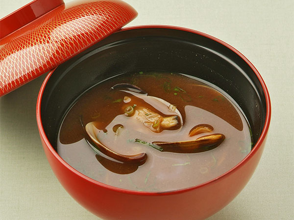 (a bowl of red miso soup with lobster)