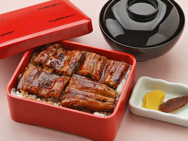 (a bowl office topped with grilled best-quality eel; comes with a bowl of clear soup)