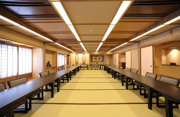 明るい大広間、畳敷きですが和室用テーブルと椅子をご用意いたしております。48名様のお席まで対応でき、間仕切りでお部屋を分けることもできます。