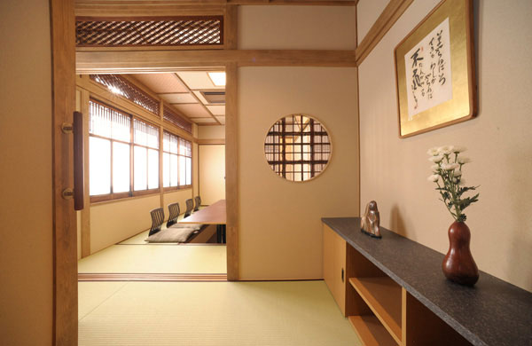 国の登録有形文化財となっている宇治山田駅舎を間近に眺めることのできるお部屋です。シックにして和のたたずまいあふれるインテリア。堀こたつ式で10名様までご利用いただけます。